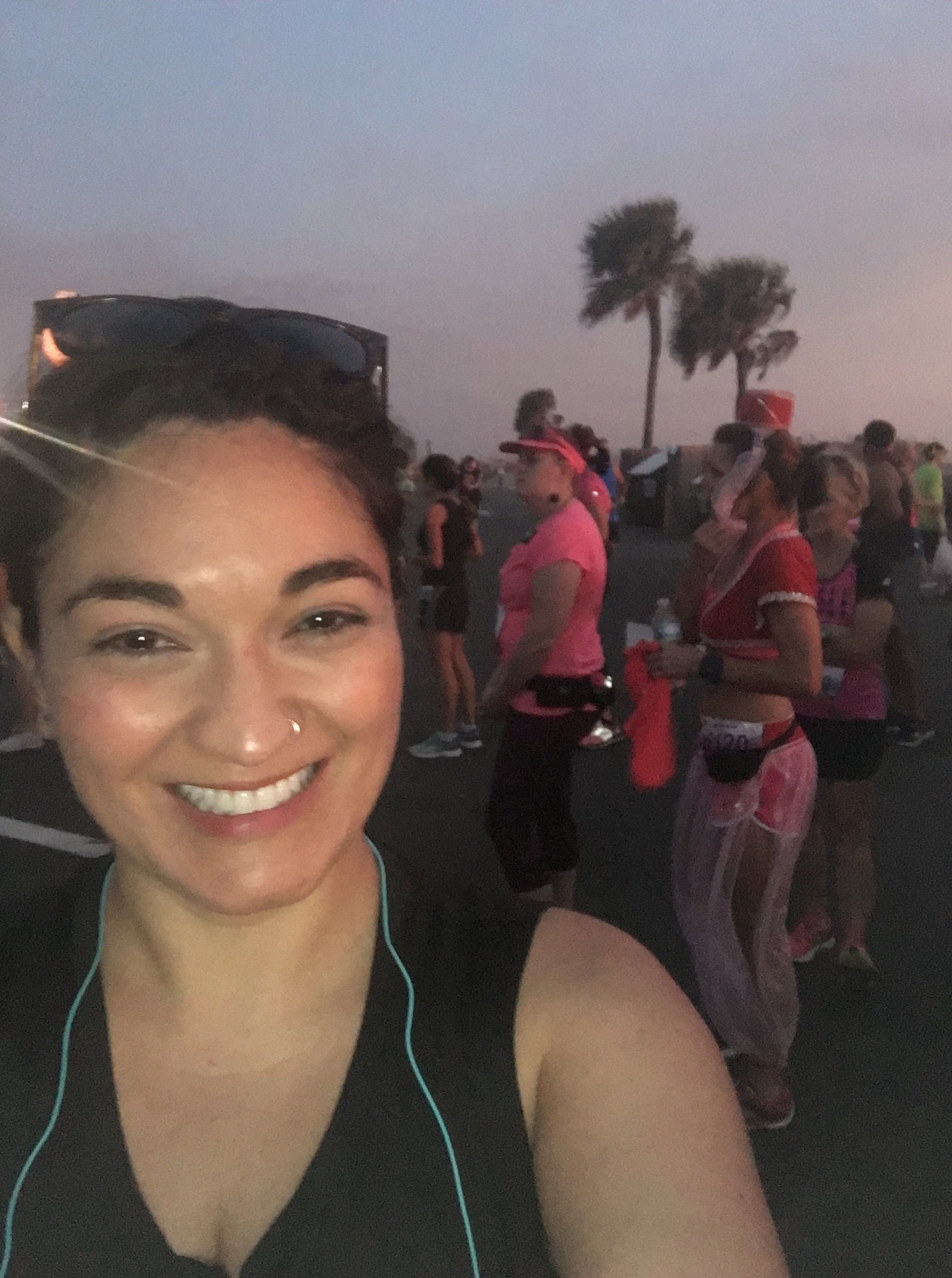 Overall, I would consider running this race again if I needed a local half marathon to run, but I wouldn’t put it on anyone’s “must-run” list or choose it for their first race. This time of the year in central Florida is still pretty hot (we were lucky enough to have cloud coverage but it was still in the 80’s) and running 13 miles is hard enough without tossing in three miles on sand. And if bathroom stops are important to you, be weary of the lack of bathrooms towards the back half of the race. The race, however, does get props for letting me watch the sun rise on the beach while waiting for the race start.