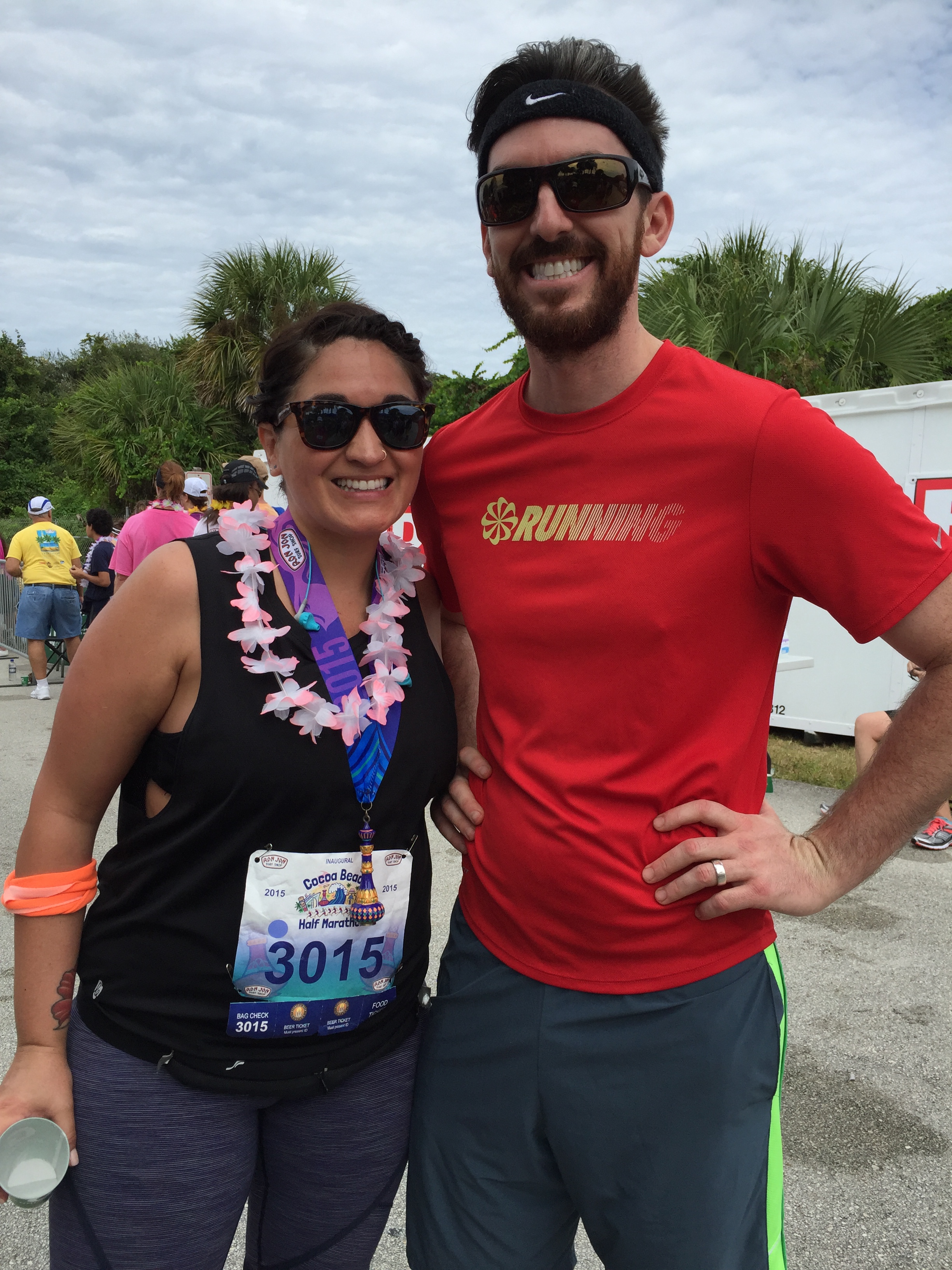 Around the time my MBA program was winding down, I started to notice how far my weight had crept up from all of that stress eating I did my last two semesters. I dusted off my old running shoes and went for a run with my crew and told them I was thinking of signing up for a full marathon this fall to get my butt back in shape. Thankfully they talked me into signing up for a half marathon instead and we chose the inaugural Ron Jon Cocoa Beach Half Marathon. I’m not sure how we chose this race, but I think timing-wise it worked for us and it happened to have a really cool Genie Bottle medal. I’m not a big medal person (I end up stashing them all in a big fish bowl), but appreciated that the race was near Orlando.