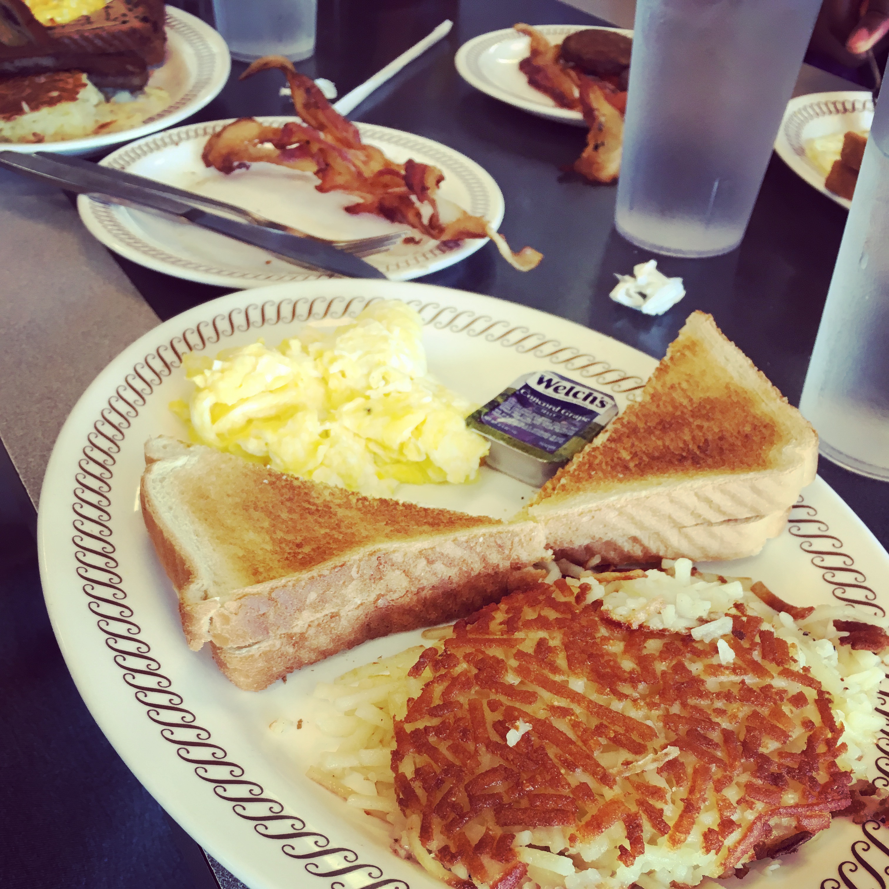 Afterwards, we had to walk a mile back to our hotel, which was torture. We quickly rinsed off, tossed on our bathing suits, checked out of our room, grabbed breakfast at the Waffle House and then spent the afternoon laying on the beach.