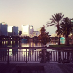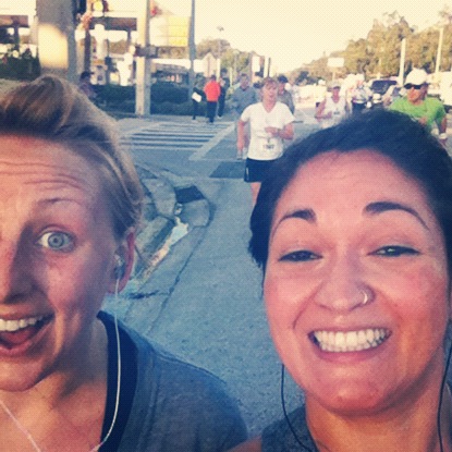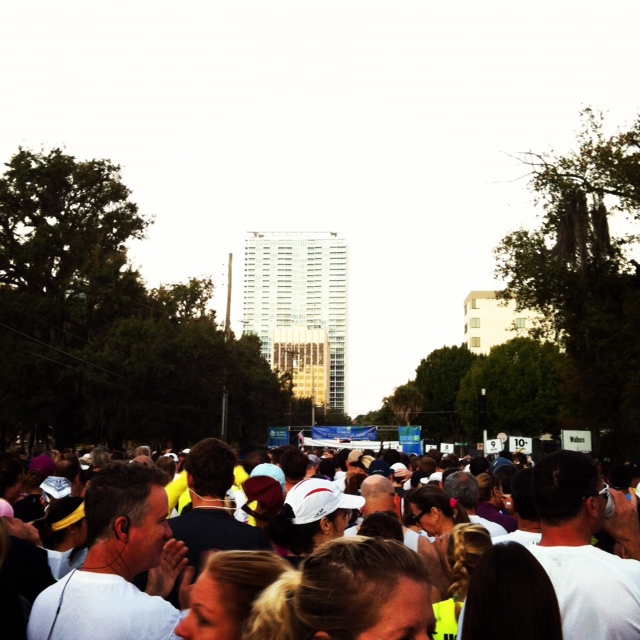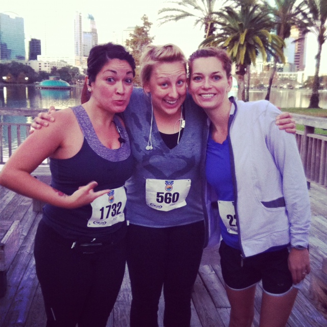 Since the OUC Half Marathon starts at Lake Eola, my friend Rox met me at 6:15 am for our warm-up walk to the start line. There we met with our friend T and one of her friends.