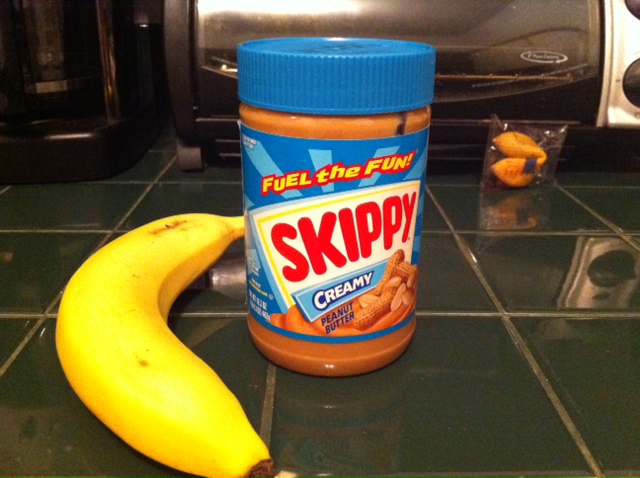 Breakfast pretty much went like this: one bite of banana followed with a lick of peanut butter from a spoon and repeat. I learned this nasty (yet delicious) habit from my gluten-sensitive boyfriend, who gave up bread late last year. The fortune cookie was not a part of my breakfast, rather it was remnants of my pre-run dinner, chicken lo mein.
