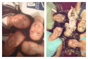 We went to get a group pictures of the ladies, when someone (I think Donnie?) suggested we take a picture laying on the ground like one we have from our past. We hit the pose, putting baby Ida Lou in between us and the boys snapped away. Donnie (who I am now thinking missed his calling as a creative director) suggested I mock the photo up next to the original (taken 14 years ago as we were headed off for college). The comparison between the two pics is amazing. When I mocked them up I realized we were in the same formation! I’m in the top left and going clock-wise it’s Boothe, Kel and Jenny. Baby Ida Lou is the middle, kicking our heads.