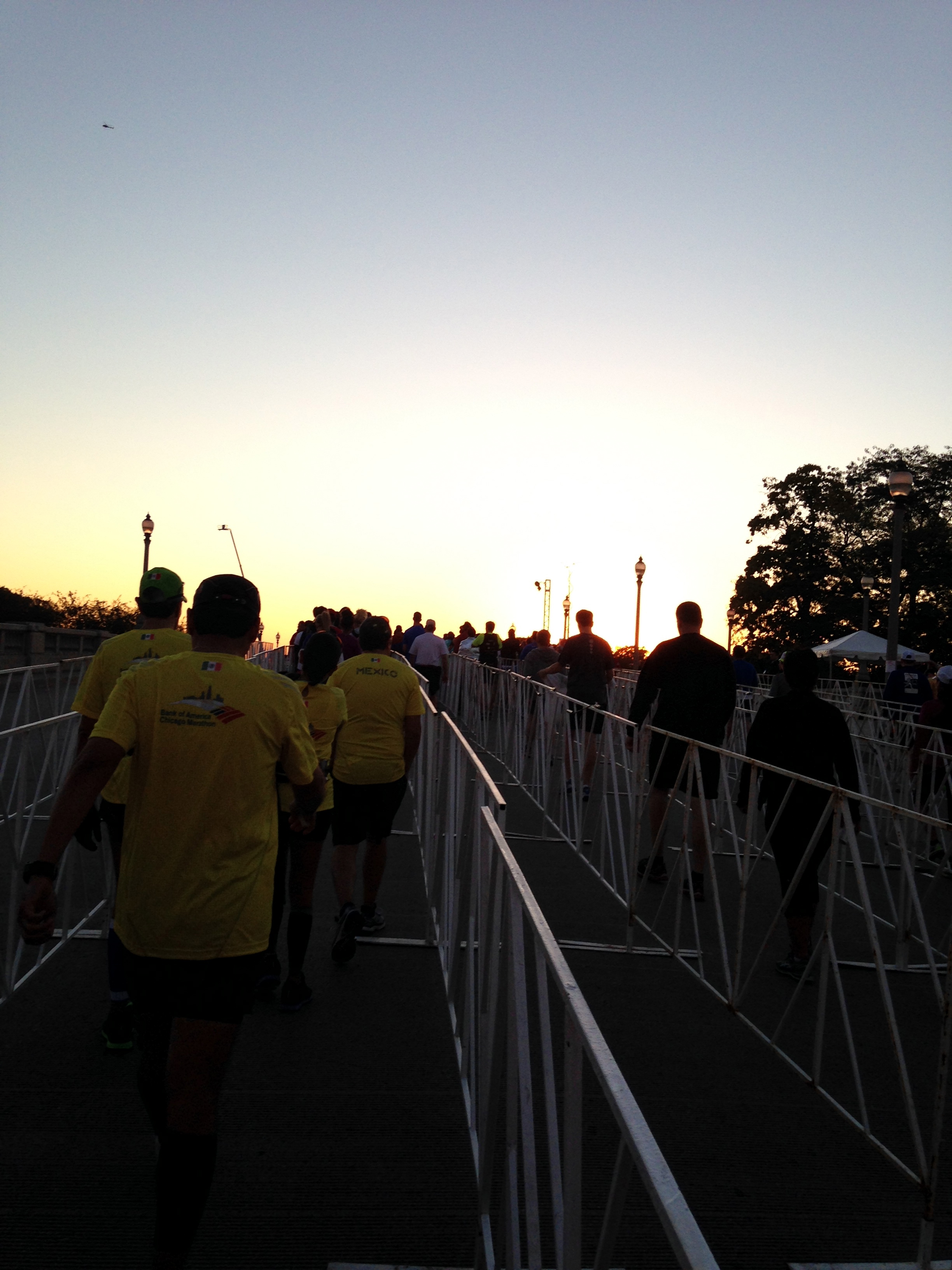 We were staying near the north end of the Magnificent Mile and had planned to walk the mile and a half down to Grant Park. The streets were dark and there were a few people clearly left over from the night before. But more and more runners kept popping out and hitting the streets. We picked one, like the stalkers that we were, and followed her. She led us straight to a subway station!