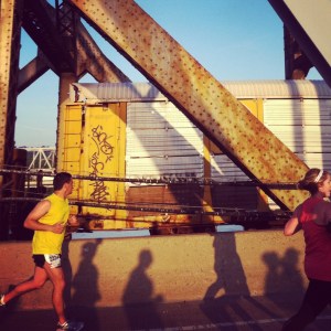 We ran together for maybe a quarter mile before she took off as we crossed the Taylor-Southgate Bridge into Kentucky. I walked up the incline (I was planning on walking all inclines during the course).