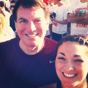 We got to the start line about 20 minutes later and did some stretching before we jumped into the start line crowd.