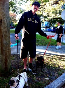 Rex (the fawn pug) was a little preoccupied with all of the runners to pay little ol’ me any attention, but Tank (the black pug) wanted to be pet. I quickly obliged then off we went again.
